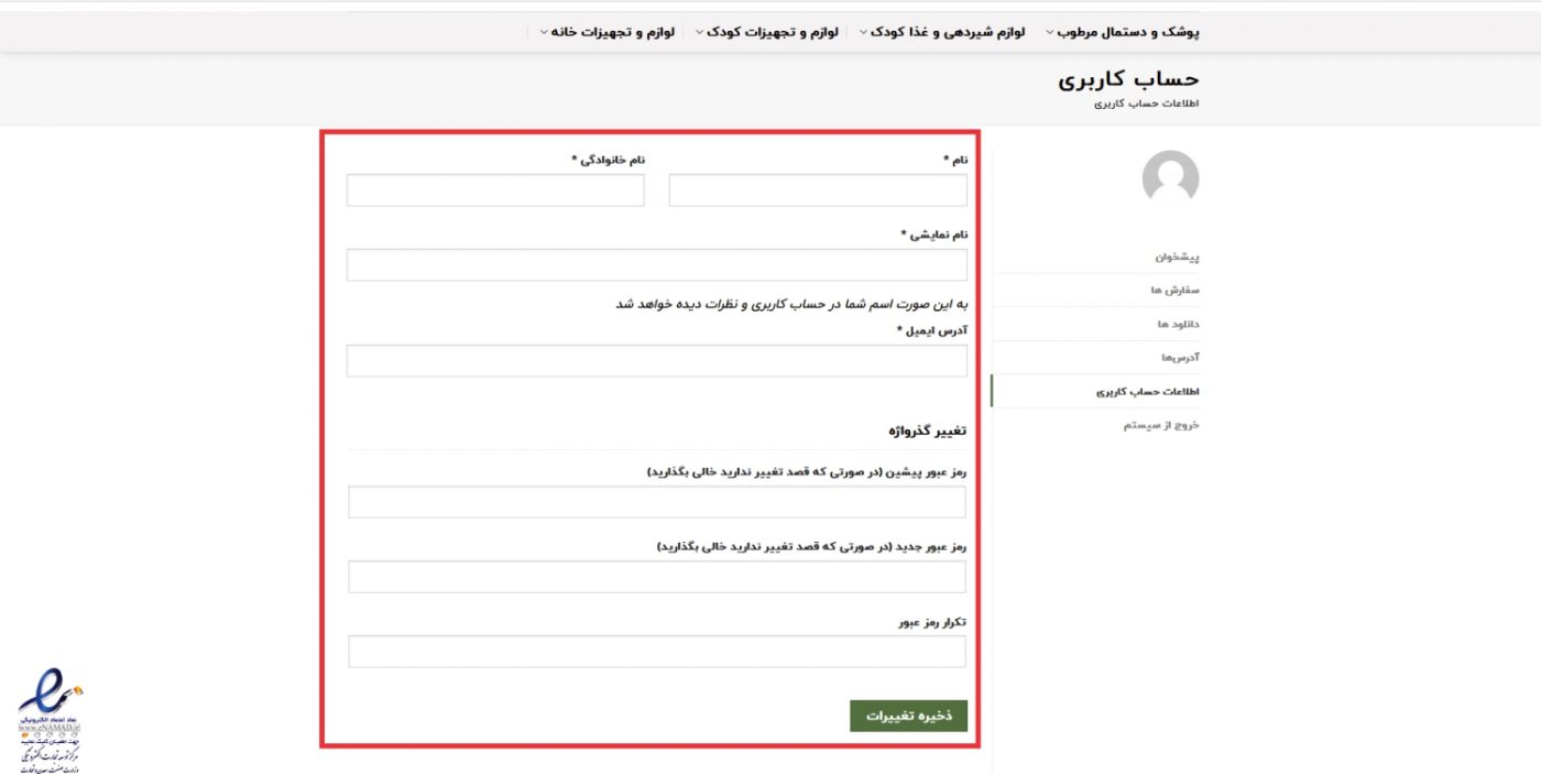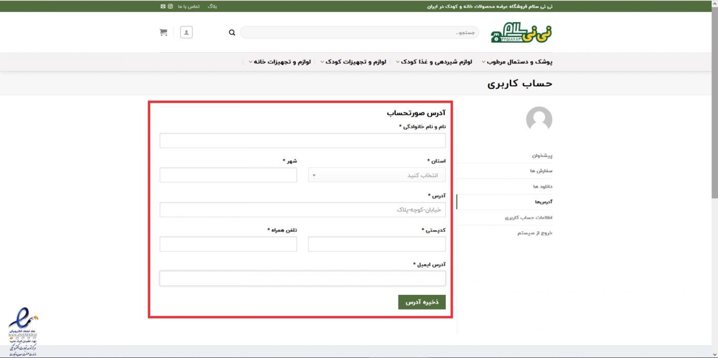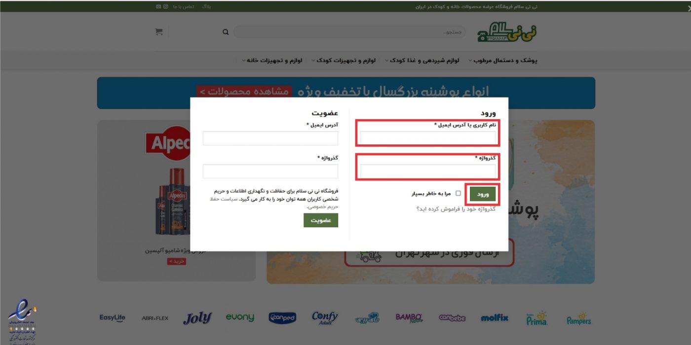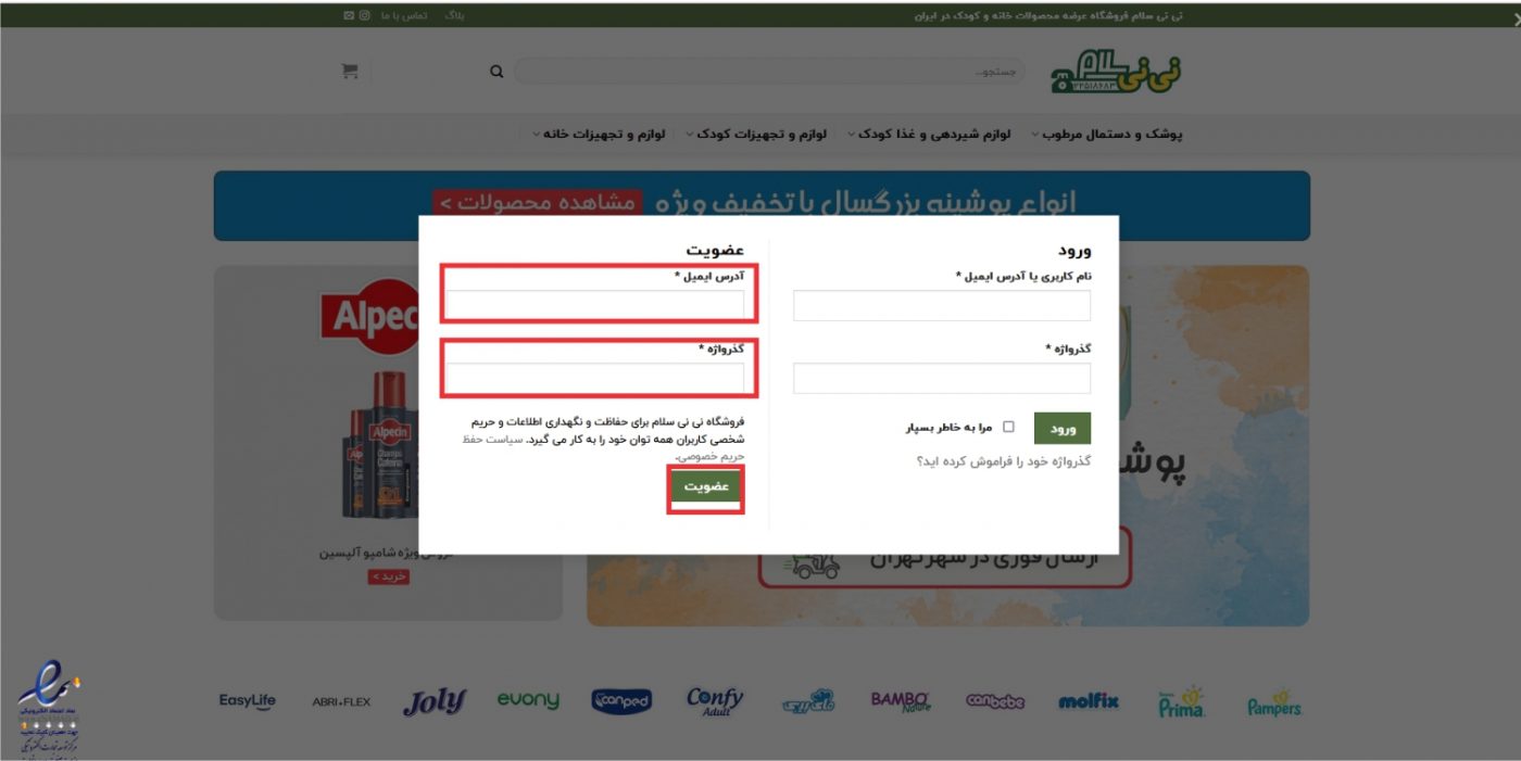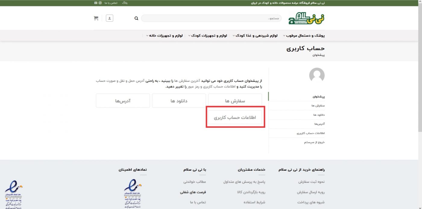 ساخت حساب کاربری در فروشگاه نی نی سلام