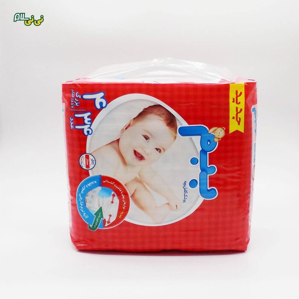 ساخت: کشور ایران مناسب برای وزن: بین ۷ تا ۱۸ کیلوگرم تعداد در بسته: ۳۴ عدد ویژگی: قدرت جذب بالا، بدون هیچگونه پس دادن نم، نرم و راحت نحوه بسته شدن: چسبی